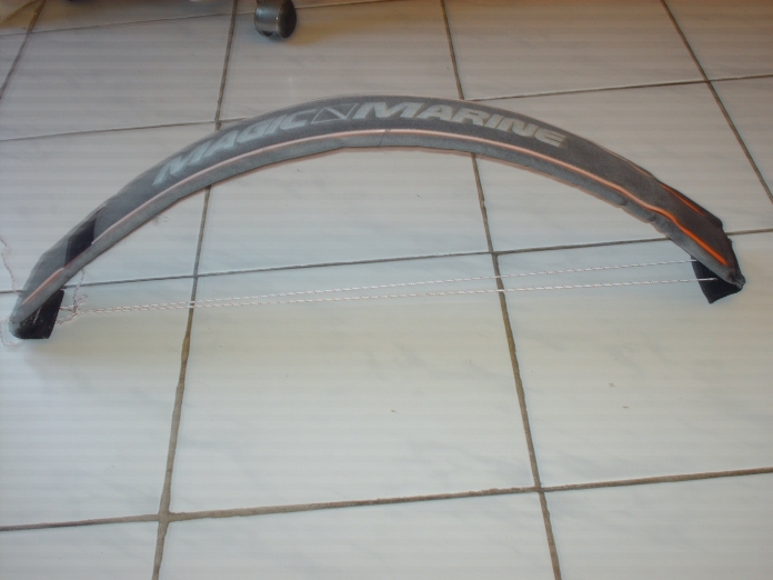 côté interne , c'est mieux mécaniquement et pour la sangle , une fois pliée la latte a tendance à vouloir s'écarter vers l'extérieur pour reprendre sa forme initiale droite et elle appuie trop fortement sur le tissu de la sangle , côté interne , la latte s'appuie sur une épaisseur plus importante et offre ainsi une meilleure résistance tout en protégeant la sangle , l'inconvénient c'est pour les pieds , mais j'ai introduit un tube de mousse qui enveloppe la latte , donc on ne sent rien quand on sera au rappel et si mes coutures venaient à lacher , la latte ne pourrait pas sortir , elle se retrouverait bloquer par les fixations de la sangle .