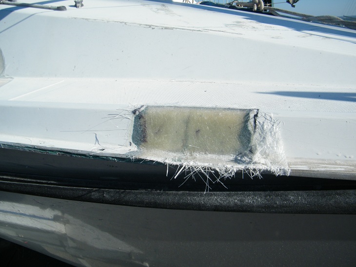 Sur Tomanou, on naviguait par vent fort avec tourmentin et un ris. On a entendu craquer et on a tout de suite viré et affalé les voiles. La liaison coque/pont était ouverte sur 20 cm. Il a suffit de recoller et ajouter une contreplaque en inox qui a la même forme que la cadène (à l'envers), mais une plaque en inox ou en alu positionnée comme des rondelles peut suffire pour éviter tout désagréments.