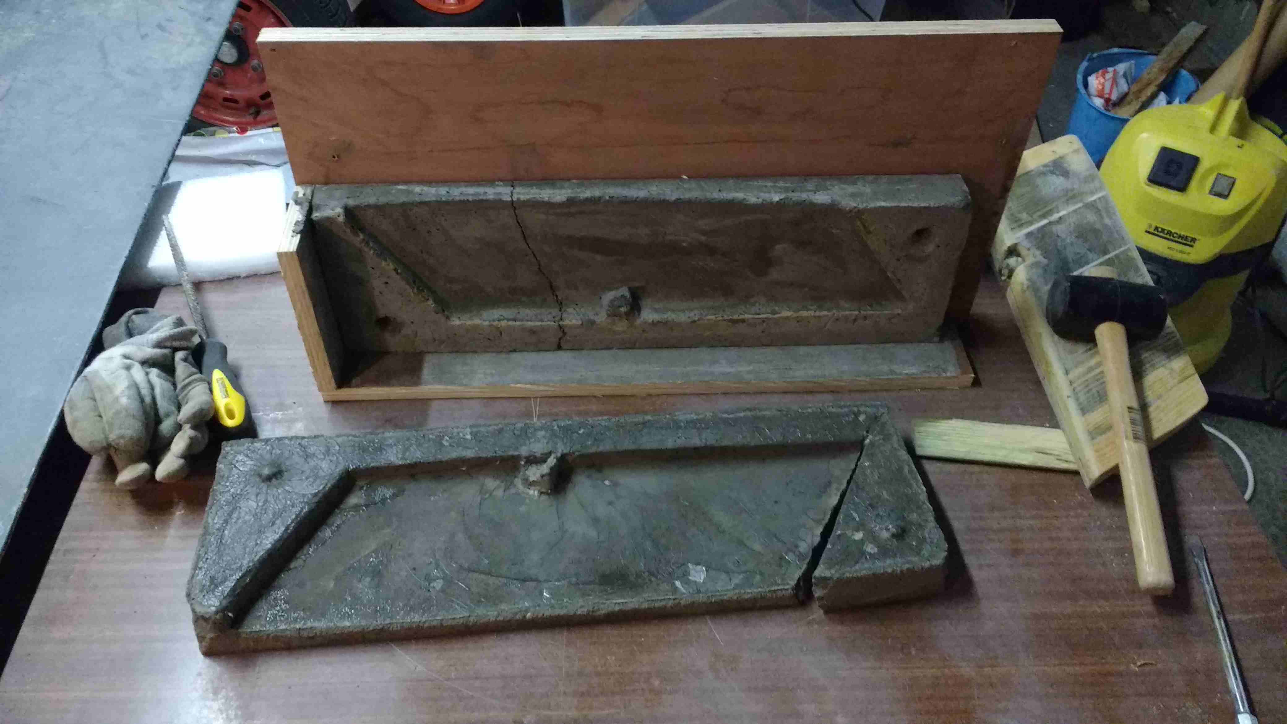 Le moule complet, coffré, avant passage au four 50°C puis progressivement jusqu'à 200 °C pour évacuer l'humidité restante.