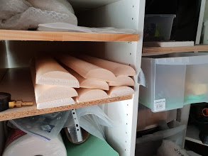 Au démoulage de mes deux pièces, j'ai comme un léger vrillage de chacune d'entre elle (elles sont pourtant parfaitement droites, ouf !) c'est pour ça que dois les coller sur un gabarit pour garder la forme. J''espère que ça marchera.